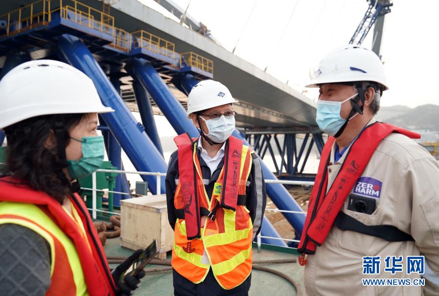 特區(qū)行政長(zhǎng)官林鄭月娥于2月25日和特區(qū)政府運(yùn)輸及房屋局局長(zhǎng)陳帆等一同乘船視察了該工程,并與之合影。在當(dāng)天的個(gè)人社交媒體上,她對(duì)這一“超巨型的預(yù)制組件”鋼橋表示贊賞,對(duì)工程的諸多創(chuàng)新表達(dá)期待。