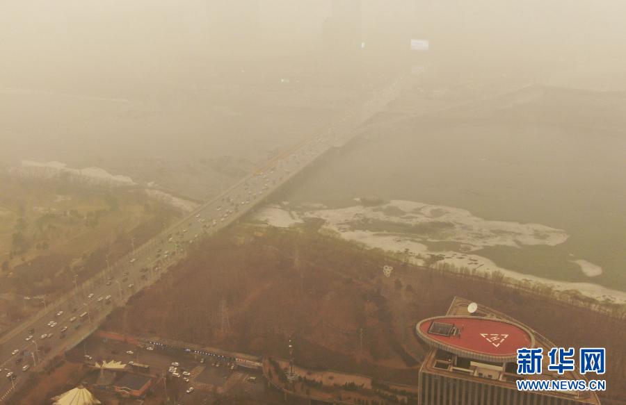 這是3月15日拍攝的遼寧省沈陽市渾河橋(無人機照片)。當(dāng)日,我國北方多地出現(xiàn)沙塵天氣。新華社記者 楊青 攝