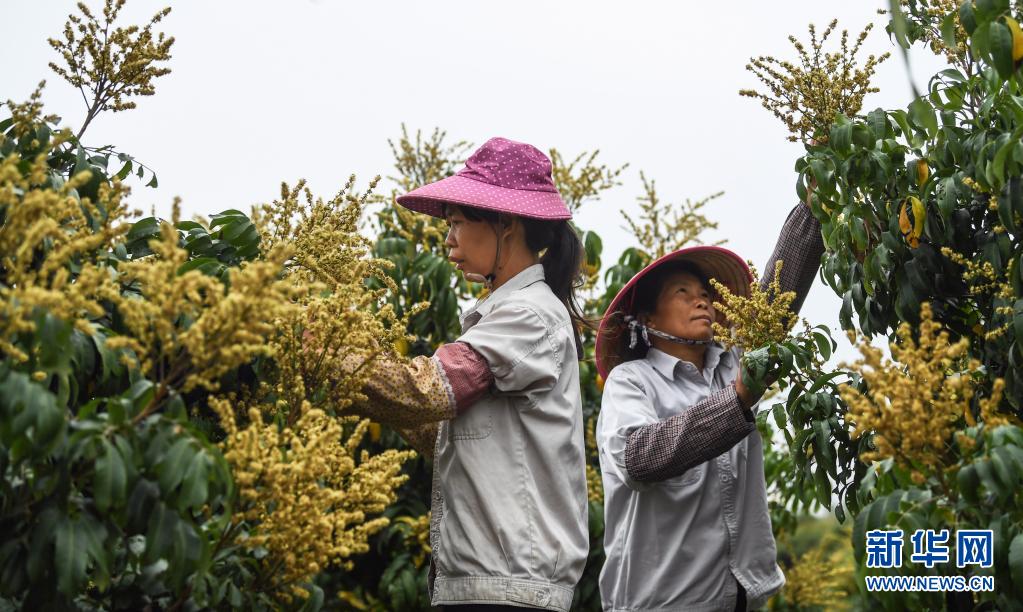 4月5日,廣西欽州市久隆鎮(zhèn)青草村村民在進行果樹管理。