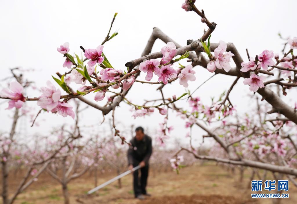 4月5日,河北省順平縣河口鄉(xiāng)大李各莊村的農民在桃園內除草。