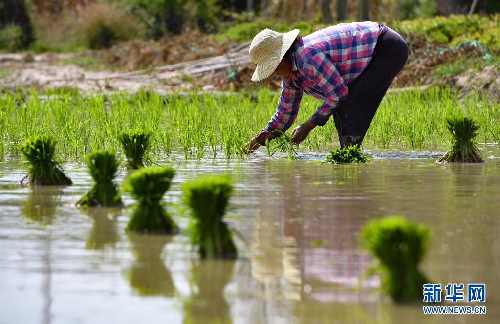 4月5日,海南省陵水黎族自治縣光坡鎮(zhèn)的農民在插秧。