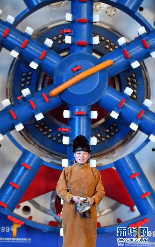王安永在中鐵工程裝備集團(tuán)車間與盾構(gòu)機(jī)合影(4月23日攝)。