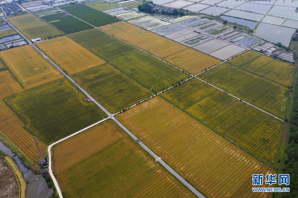 初夏時節(jié),浙江省湖州市吳興區(qū)東林鎮(zhèn)萬畝田野里的金黃的小麥、綠色的桑葉、彩色的花海還有白鷺等野生鳥類等構成了一幅五彩田園的美麗景色。