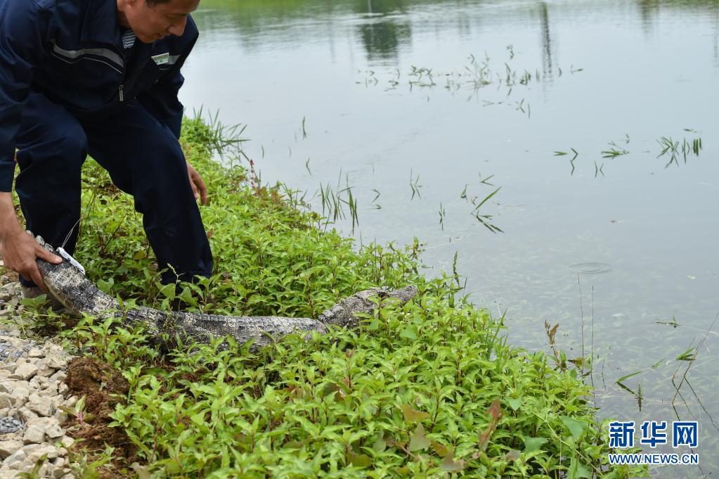 5月13日,工作人員放歸揚子鱷。