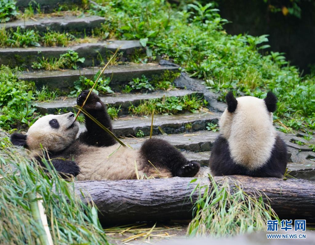 這是5月15日在中國大熊貓保護研究中心雅安碧峰峽基地拍攝的大熊貓。