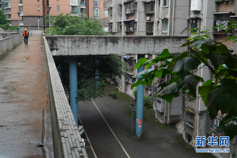 繼輕軌穿樓、高鐵穿樓、“貓頭鷹”立交橋之后,重慶又一建筑走紅網(wǎng)絡(luò)。近日,有網(wǎng)友發(fā)現(xiàn),重慶渝中區(qū)一個老小區(qū)幾棟居民樓的4樓中間,建起了連接各個單元的空中走廊,居民出入猶如空中漫步。新華網(wǎng) 耿駿宇 攝
