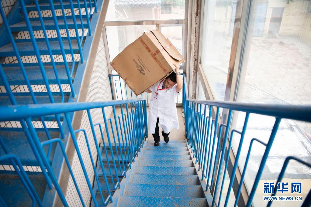 在太原市社會(兒童)福利院,黨龍祥在搬運社會愛心人士捐贈的玩具(5月26日攝)。新華社記者 楊晨光 攝