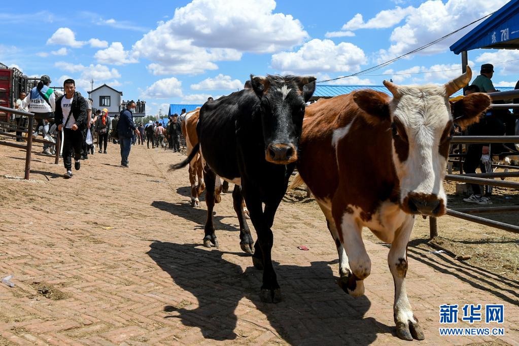 6月1日,賣家在開魯牛市趕牛。