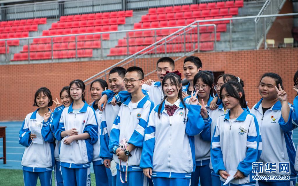 6月9日,烏當(dāng)中學(xué)高三學(xué)生在操場(chǎng)上拍照留念。