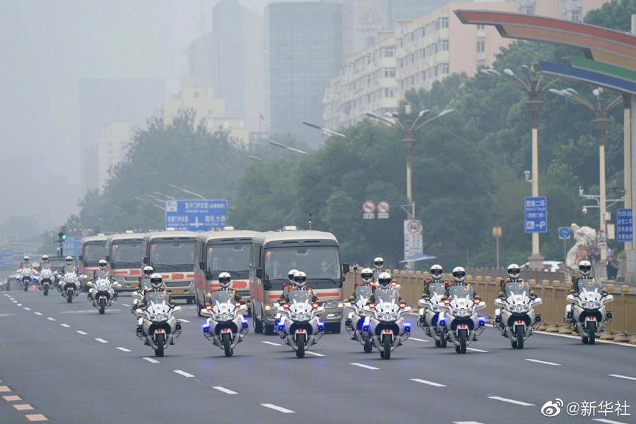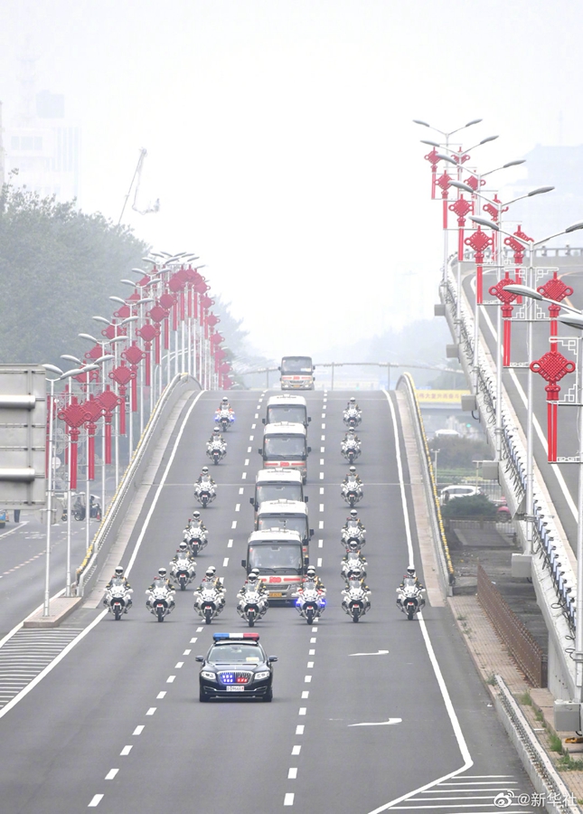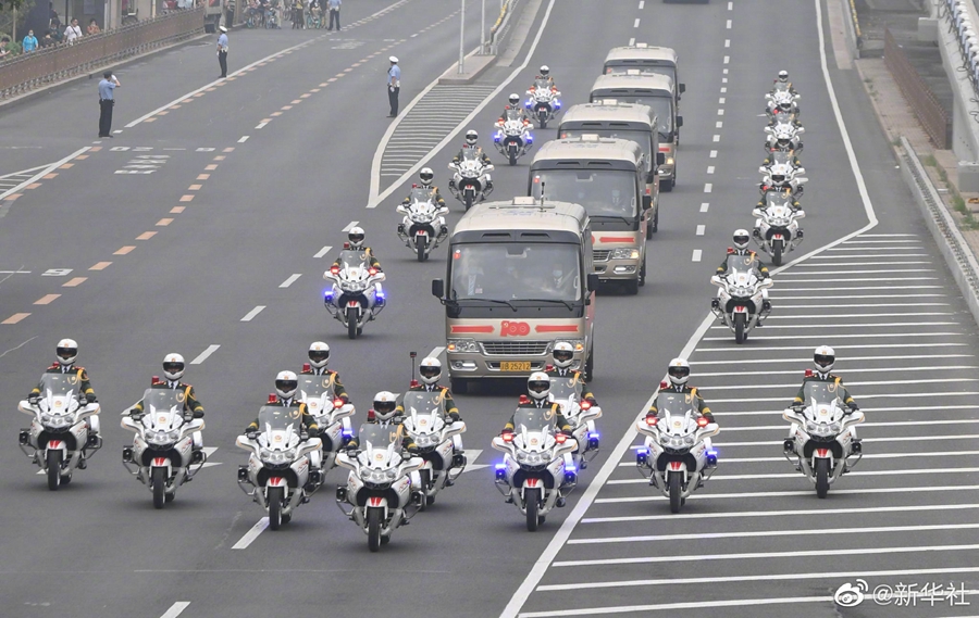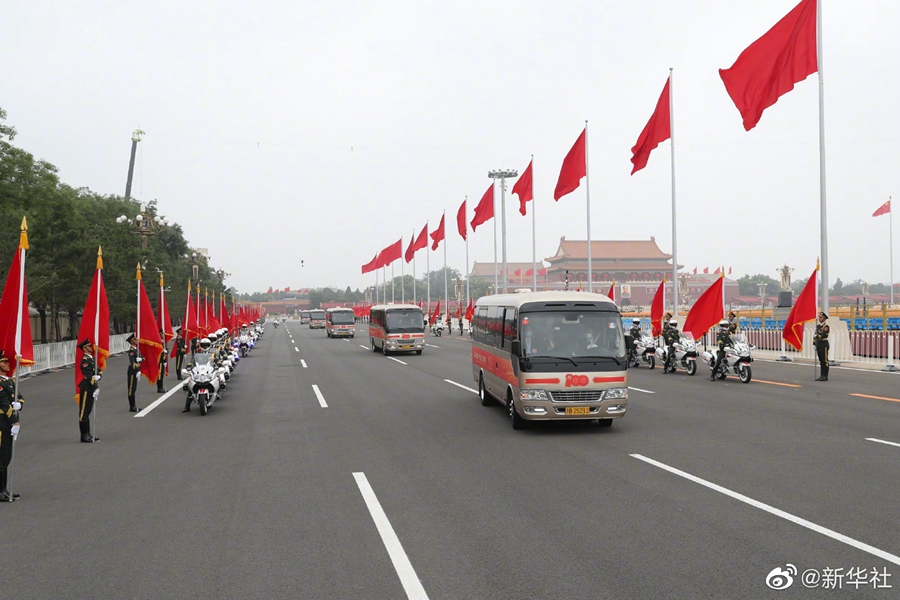 29日上午,“七一勛章”獲得者集體乘坐禮賓車從住地出發(fā),由國賓護(hù)衛(wèi)隊(duì)護(hù)衛(wèi)前往人民大會堂。