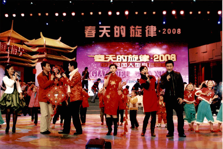 2007年除夕,南宁电视台与越南的电视台进行首次卫星连线直播,将合办春晚的设想变为现实。首届跨国春晚规模不大,节目也多以单向展示为主。屏幕上,壮乡鼓楼与法式建筑同框,壮族敬酒歌与越南官贺民歌遥相呼应。这场略显青涩的合作,意外赢得了越南全国收视率前列的佳绩。