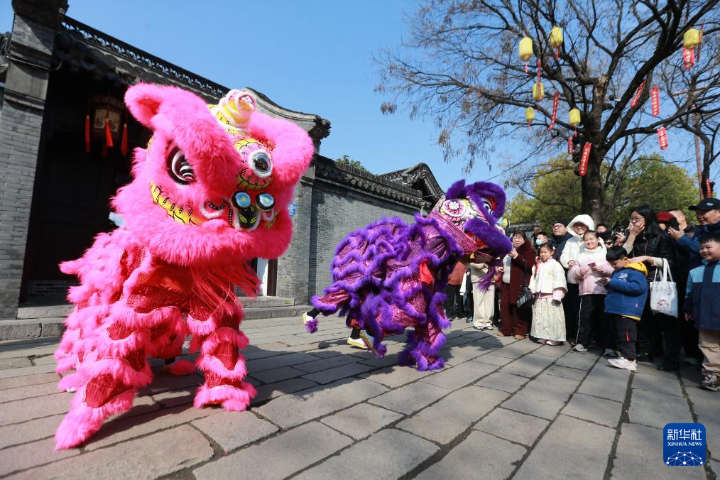 2月17日,民间艺人在江苏省扬州市何园景区表演舞狮。