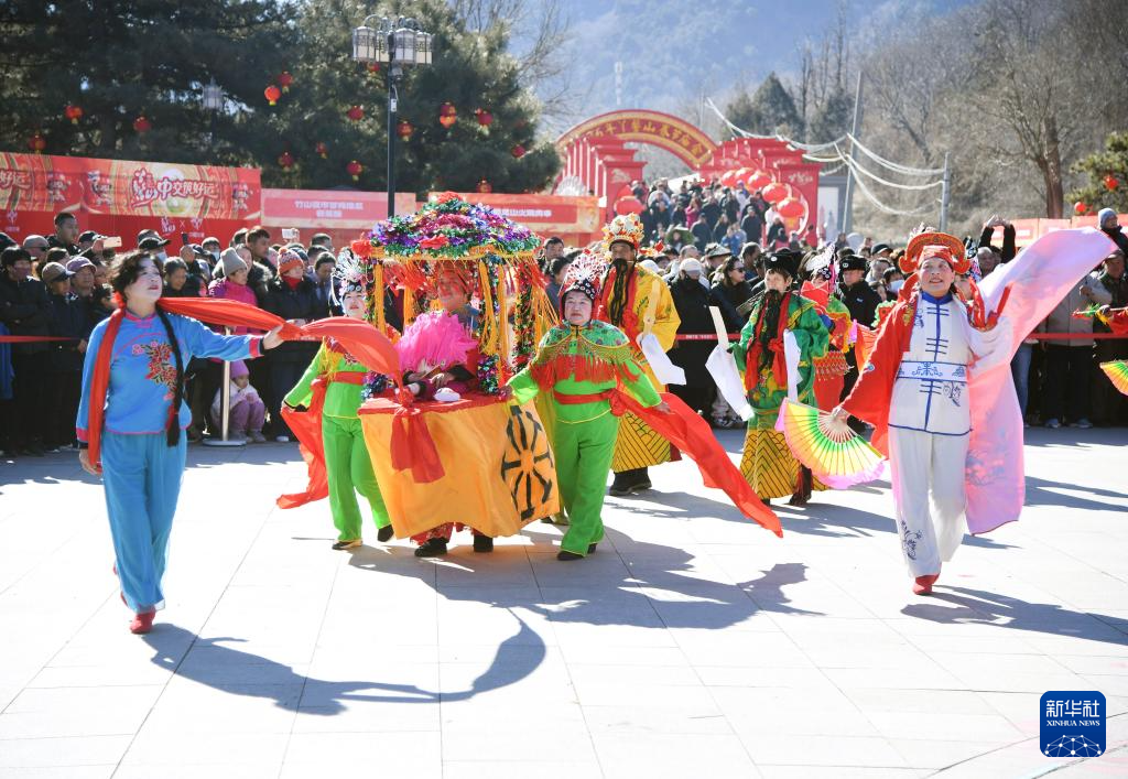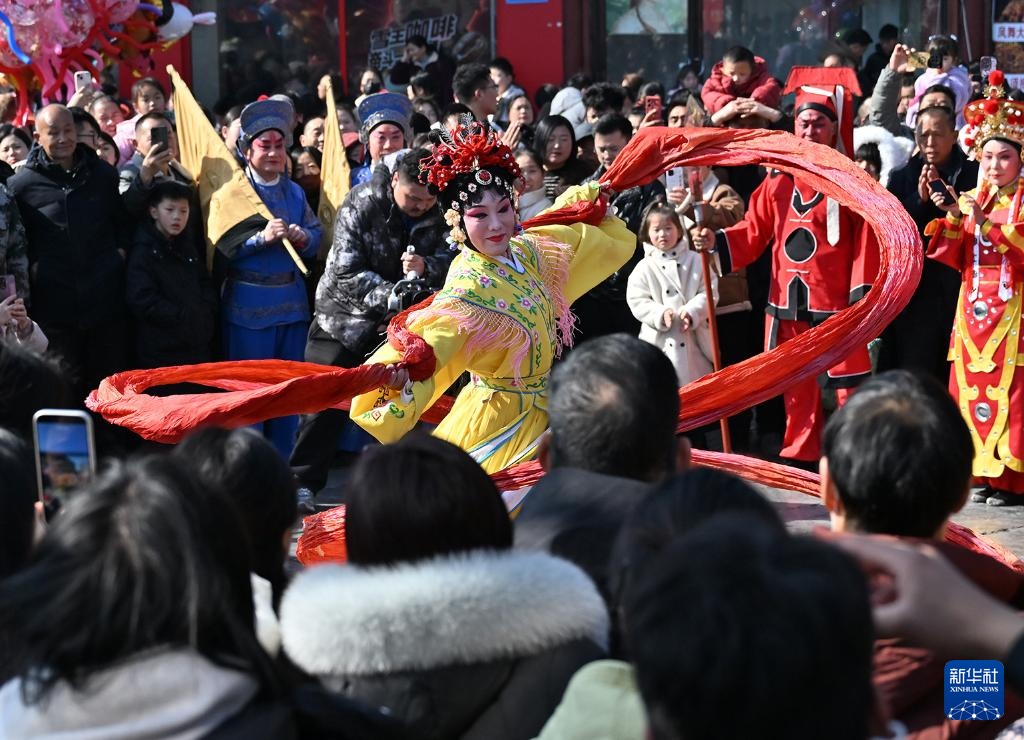 2月17日,演员在北京市平谷区刘家店镇2026年丫髻山春节庙会上表演节目。