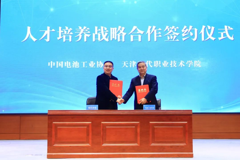 中国电池工业协会与天津现代职业技术学院签署了人才培养战略合作协议,标志着双方在人才培养和“五金”建设方面将展开更深入的合作。
