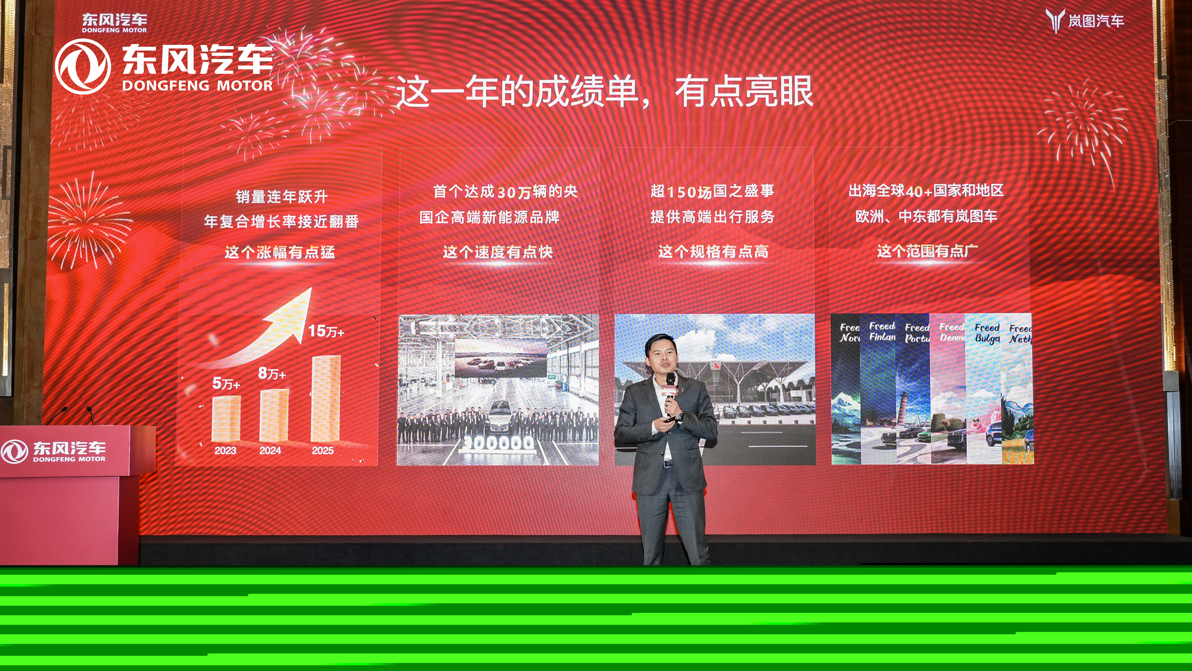 站在“十五五”开局的新起点,东风汽车将加快实现从“技术兑现”到“价值共鸣”,锚定全年整体销量325万辆,新能源汽车销量170万辆、出口60万辆的新目标,全身心投入“智能化、绿色化、融合化”转型。