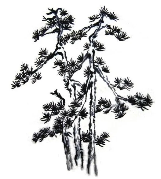 夾葉法:以雙鉤法為之,是以各種樹葉的生長結構和形態(tài)加以概括出來的表現(xiàn)程式。
