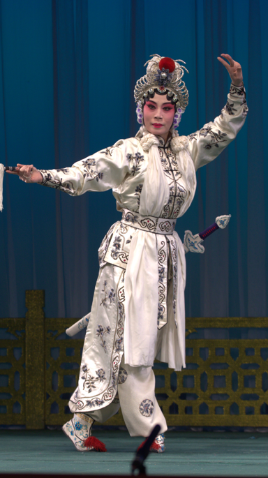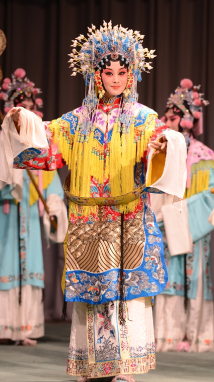 刀馬旦擅長武藝,多是扮演穿蟒扎靠,戴翎子的女將,兼重唱、念和做工。其所塑造的角色既要能唱又要善打,不僅要有文戲的功底,還要有武戲的基礎(chǔ)。刀馬旦經(jīng)常在精彩的武打表演同時穿插大段唱詞,在劇烈的形體運動后保持昆曲特有的柔美唱腔,難度可想而知。