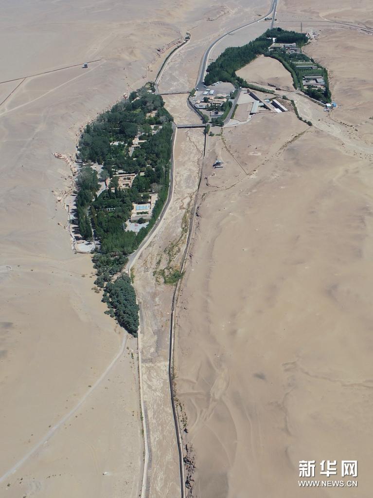 大泉河及其流經(jīng)的敦煌莫高窟(7月6日攝,無人機照片)。新華社記者 劉詩平 攝