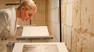 卢发良在工作室仓库内整理自己的细纹刻纸作品(3月12日摄)。