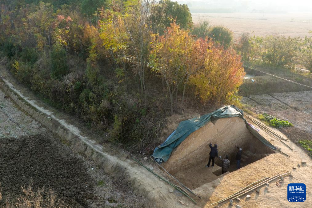 2023年12月4日拍摄的湖北荆门屈家岭遗址一角(无人机照片)。