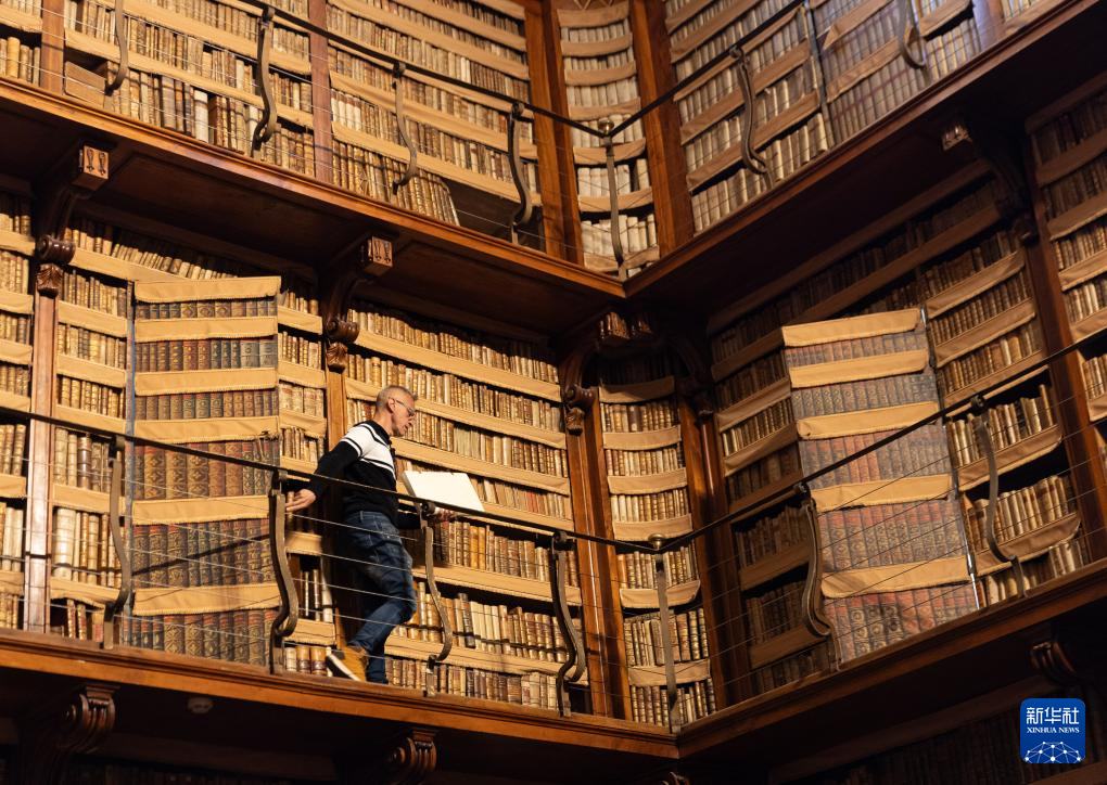4月22日,工作人员经过意大利罗马安杰莉卡图书馆馆藏。