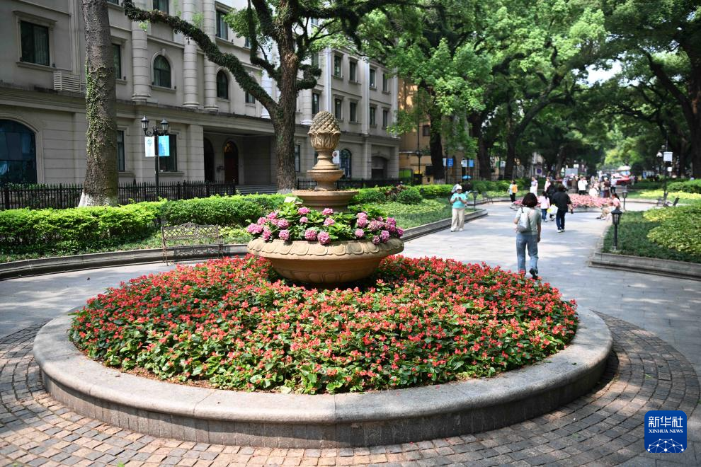 广州沙面大街上绿树成荫、鲜花盛开(4月11日摄)。