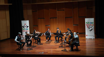 4月28日,在比利时布鲁塞尔,参赛选手在“汉语桥”世界大学生中文比赛比利时赛区决赛中展示才艺。
