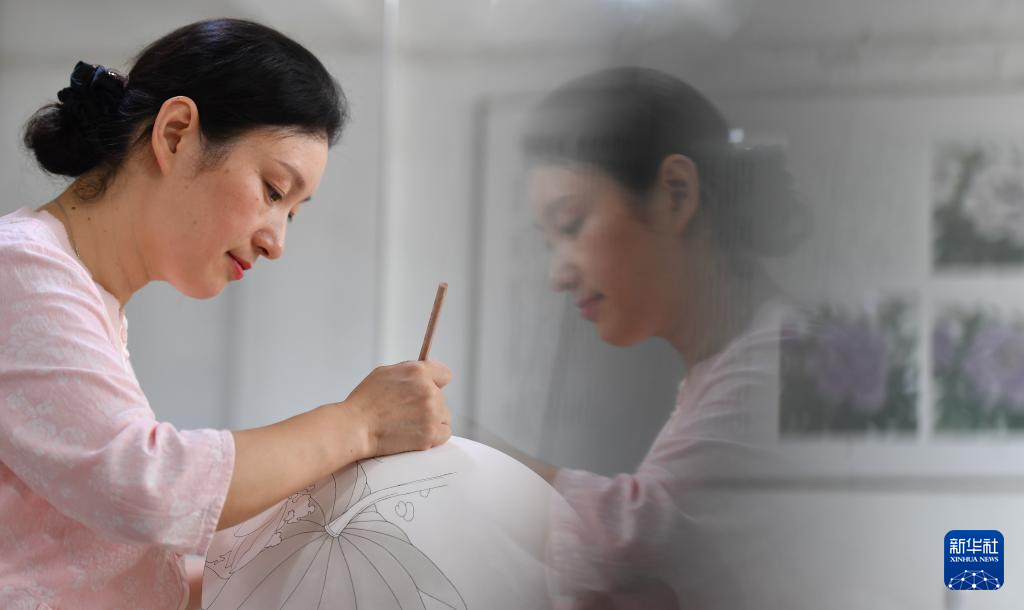 9月27日,醴陵釉下五彩瓷烧制技艺国家级非遗代表性传承人陈利在制作陶瓷彩绘。