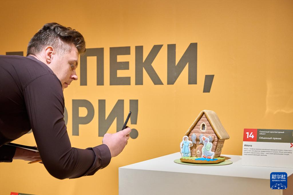 10月11日,在符拉迪沃斯托克姜饼节活动现场,一名评委正在欣赏姜饼作品。