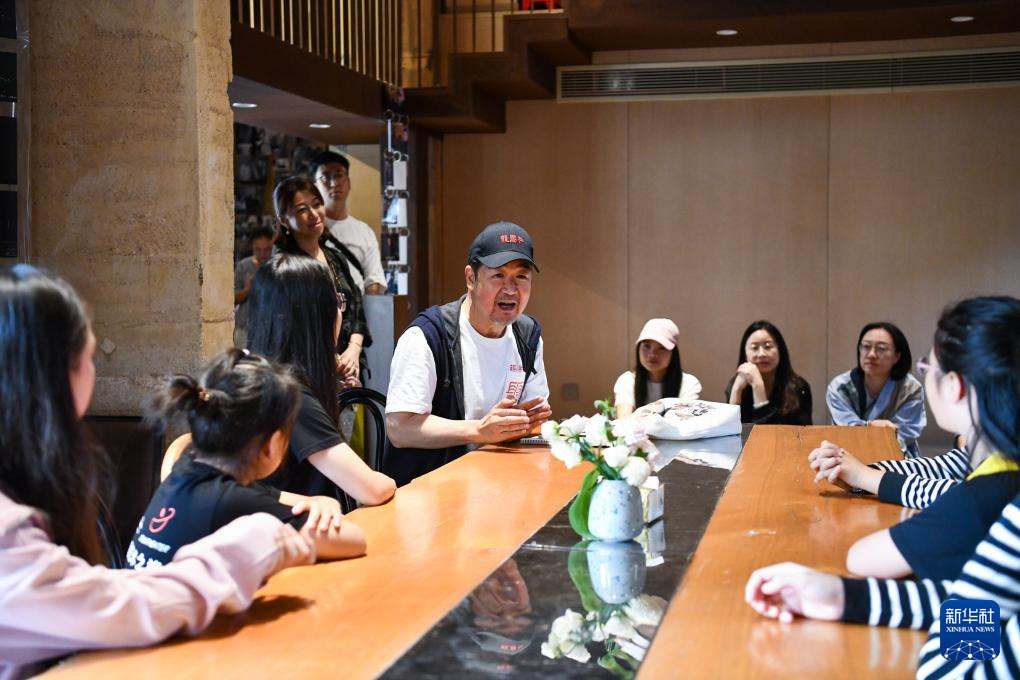 在长守戏剧谷,演员、导演张国立(右下)与爱好戏剧的孩子们交流(11月9日摄)。