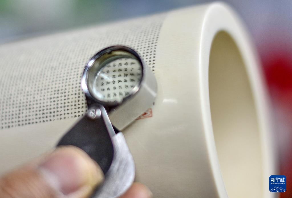 李春珂创作的微雕技艺笔筒(猛犸象牙)(12月17日摄)。