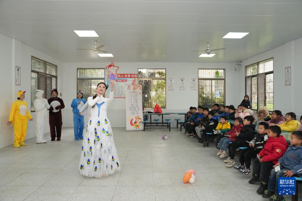 12月24日,长沙市群众艺术馆的演员在长沙市望城区沱市小学表演儿童剧。