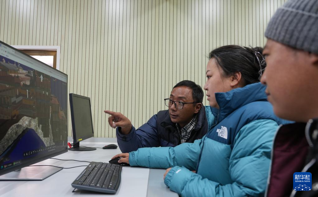 12月4日,布达拉宫监测中心的工作人员在查看布达拉宫三维图像。