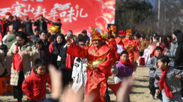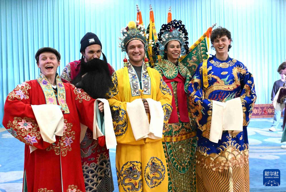 12月30日,美国大学生在河北省石家庄市京剧团体验。