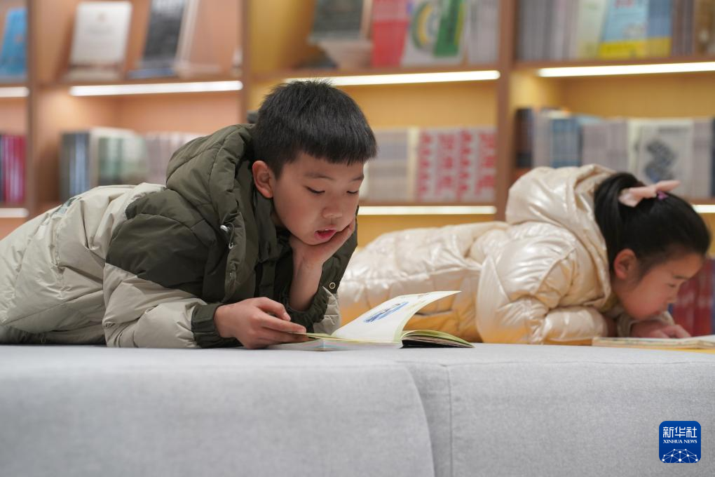1月13日,小读者在新落成的长安书院内阅读。
