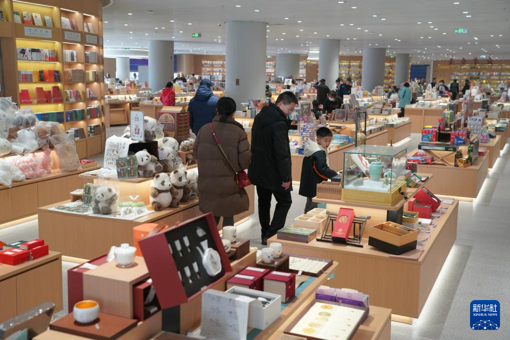 1月13日,参观者在新落成的长安书院内参观文创产品。