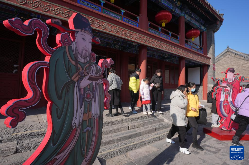 1月22日,“到沈阳故宫过大年”系列文化活动在沈阳启动,这是沈阳故宫工作人员在悬挂门神。
