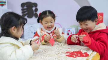 2月13日,河北省邯郸市一名剪纸艺人在创作哪吒主题剪纸作品。