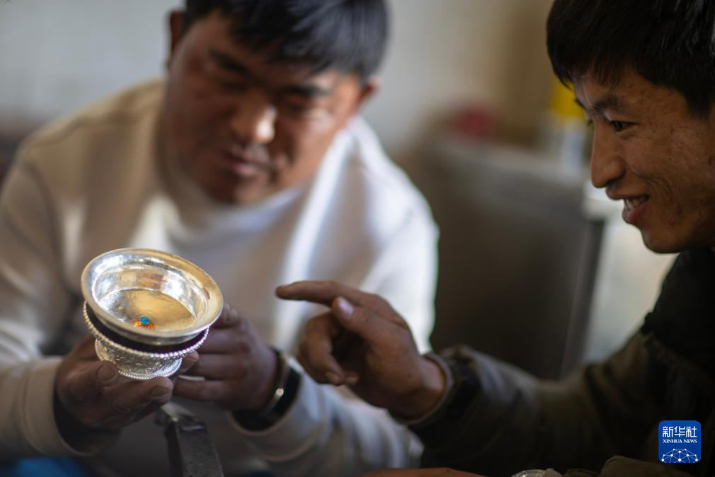 3月6日,扎西吉彩的手工匠人在给银器塑形。
