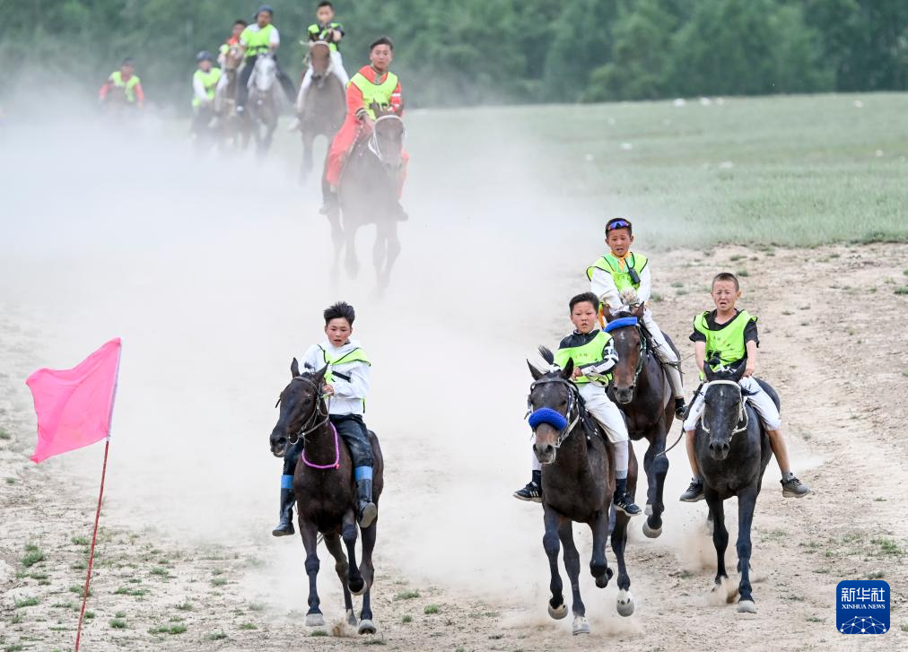 5月24日,在新疆阿勒泰市汗德尕特蒙古族乡,选手参加骑马比赛。