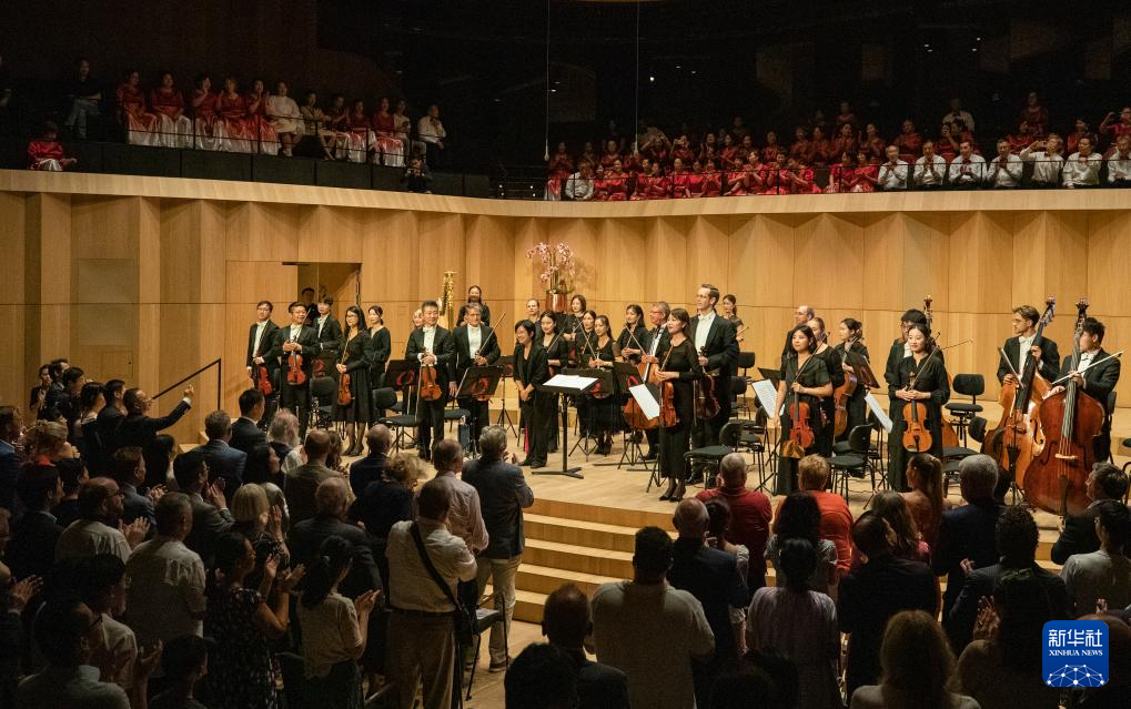 8月13日,在德国法兰克福克伦贝格音乐学院卡萨尔斯音乐厅,中德音乐家演出后相互致意。