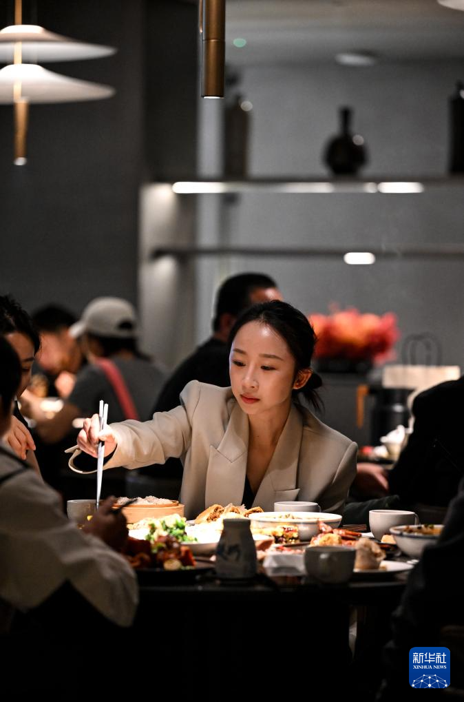9月24日,顾客在宁夏吴忠市一家早茶店喝早茶、品尝特色小吃和面点。
