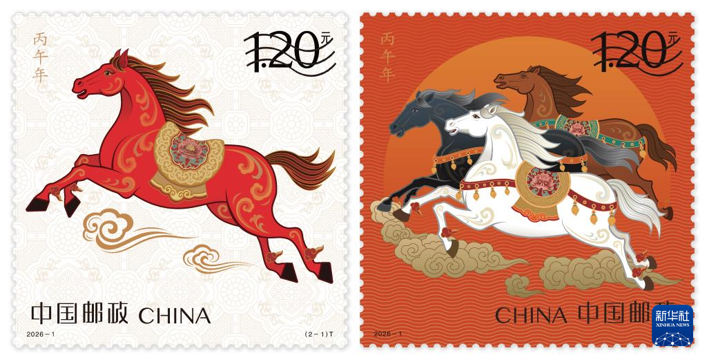 《丙午年》特种邮票由王红卫、赵恩重设计。邮票第一枚图名为“驰跃宏图”,以“腾跃新时代”为核心意象。第二枚图名为“万骏臻福”,以“万马奔腾,驰骋千里”为核心意象。该套特种邮票将于2026年1月5日正式发售。