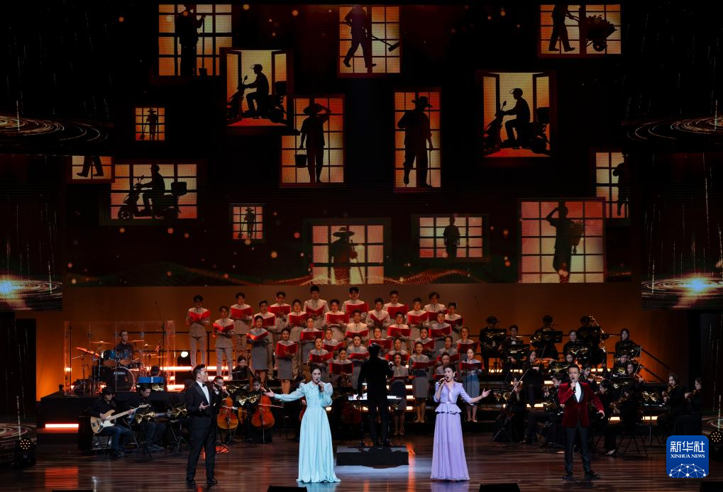 12月16日,在北京二七剧场举办的“中国梦·劳动美”2026新年音乐会上,演员在大合唱《亿万职工心向党》中歌唱。