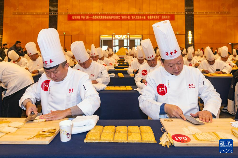 12月23日,泰州早茶“百人炫技千斤丝”非遗传承活动在江苏省泰州市海陵区泰州宾馆举行,百位干丝制作师傅同台献艺,展示泰州早茶中干丝的制作技艺。目前,泰州早茶已形成标准化体系,当地政府将持续深化文商旅融合,助推泰州早茶产业发展。