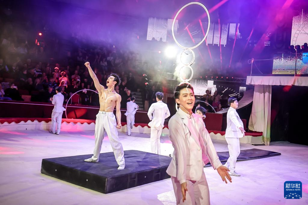 1月12日,在匈牙利首都布达佩斯,中国杂技团演员在表演《时光》。