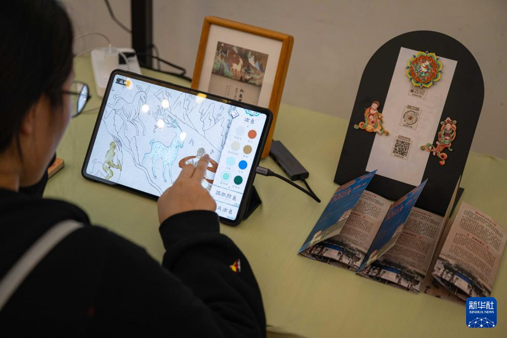 2月20日,市民在敦煌文化周活动上参与数字互动体验。新华社发(张金加摄)