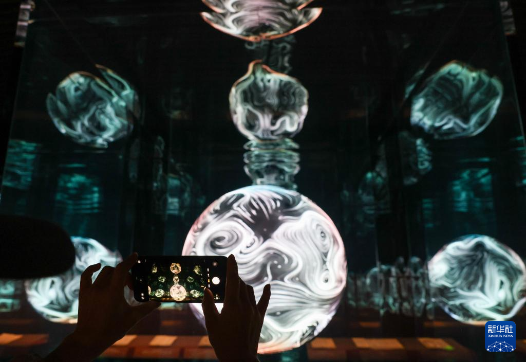 2月27日,参观者在“既往未来——小西天文物撷珍与悬塑艺术特展”的“无量之境”展台拍摄。