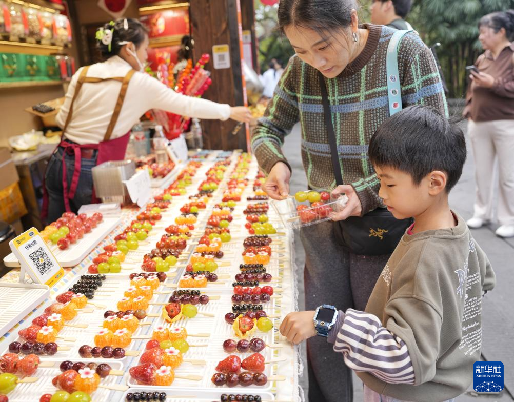 2月27日,游客在2026武侯祠成都大庙会上选购糖葫芦。