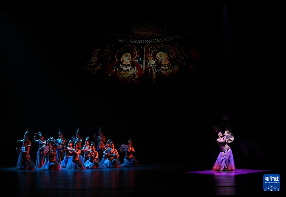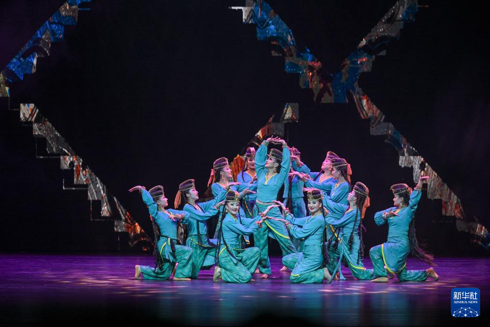2月28日,演员在大型乐舞诗《杏花之约·丝路龟兹》中表演。